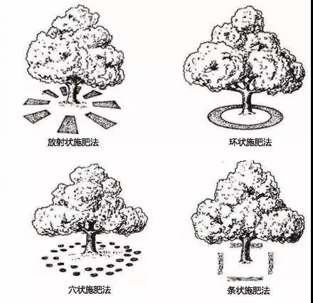 放射狀溝施法。以樹(shù)干為中心,距樹(shù)干1米處的地方水平方向挖3~5條寬40厘米左右、深30~50厘米的溝,由淺到深向外延伸到樹(shù)冠外緣,此法傷根較少,且可隔年更換施肥位置,有利于肥料的吸收和利用。