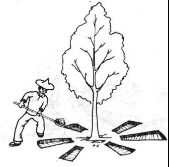 放射溝(輻射狀)施肥 由樹冠下向外開溝,里面一端起自樹冠外緣投影下稍內(nèi),外面一端延伸到樹冠外緣投影以外。溝的條數(shù)4~8條,寬與深由肥料多少而定。施肥后覆土。這種施肥方法傷根少,能促進(jìn)根系吸收,適于成年樹,太密植的樹也不宜用。第2年施肥時(shí),溝的位置應(yīng)錯(cuò)開。