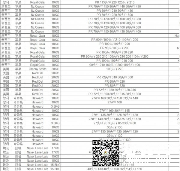 本欄目?jī)r(jià)格統(tǒng)計(jì)來(lái)源于廣州江南進(jìn)口水果批發(fā)市場(chǎng)的開柜整板交易價(jià)格,僅供參考,非集果軒報(bào)價(jià)。詳詢請(qǐng)撥打熱線電話020-81273836或加客服微信berda04、berda09