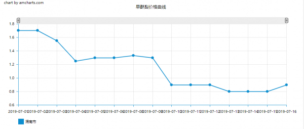 根據(jù)目前的情況可對后期早酥梨的價格可以做出簡單推斷:大致行情會穩(wěn)定早7月10日~7月16日的價格曲線圖上(均價0.8~0.9元左右/斤)。