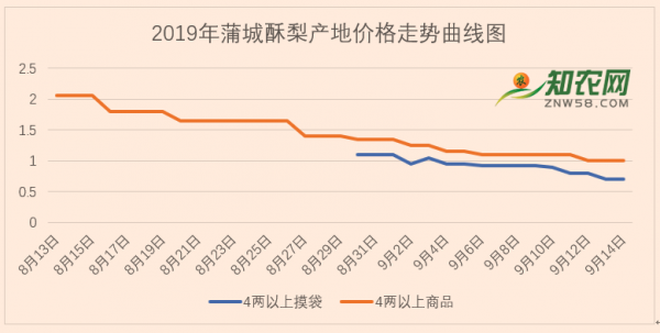 產區酥梨摸袋已經下跌至0.7元左右/斤,根據目前的情況知農網分析師分析:預計價格還要下跌。(知農網-趙偉)