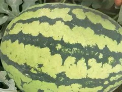 陜西新地甜一是最新育成的中早熟、優質、耐裂西瓜甜王新品種。該品種果實發育期32天左右,全生育期92天左右。植株長勢穩健,果實短橢圓形,深綠底覆蓋墨綠齒條紋,有果霜,外形美觀。易座果,單瓜重8公斤左右,中心可溶性固形物含量高的可達12%以上,大紅肉,剖面均勻,耐熱性強,不易水脫,肉質脆爽,口感佳。耐裂,耐儲運,破損率低,商品率高。適于高產栽培及遠距離運輸。適合華北、東北、華東、云南等地區保護地與露地早春栽培。
