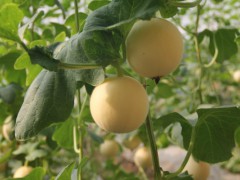 千玉1號為早熟種。植株長勢強(qiáng),節(jié)間較長,伸蔓快,葉子中等大小,五裂,葉色淺綠;雌花密,為兩性花,可自花結(jié)實(shí),易坐果;從開花至成熟28~30天,果實(shí)圓球形周正,成熟后果面白亮,不落把;果肉橙紅色,厚3.5~4厘米,干腔小,可溶性固形物含量16~18%,肉質(zhì)松脆,汁水豐沛,具有哈密瓜風(fēng)味,品質(zhì)佳美;果實(shí)耐貯運(yùn)性好,貨賀期長,常溫下可貯藏30天。全生育期90天左右,露地和延秋栽培生育期較短,春播和大棚栽培生育期較長,高抗甜瓜霜霉病、炭疽病,對葉枯病、蔓枯病抗性較好,感白粉病。