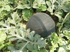 蒲城西瓜網訊 陜西蒲城種植的黑無籽西瓜(黑蜜二號)全生育期95-100天,從雌花開放到成熟32天,植株長勢強健。抗病,抗逆性強,座果性好,適應性廣,果實圓形,果皮全黑色,外形十分美觀,果皮厚1.1-1.2厘米,果肉鮮紅,剖面均勻一致,果肉汁多味甜,質脆爽口,中心折光糖含量12%,不倒瓤,不裂果,果皮堅韌,極耐貯運,單瓜重6至8公斤,大瓜可達12公斤以上,畝產4500-5000公斤。